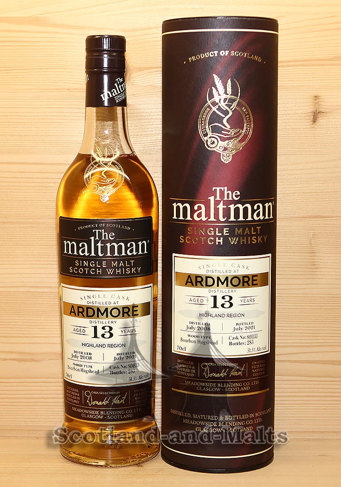 Ardmore 2008 - 13 Jahre Bourbon Hogshead No. 801133 mit 51,5% von The Maltman - single Malt scotch Whisky
