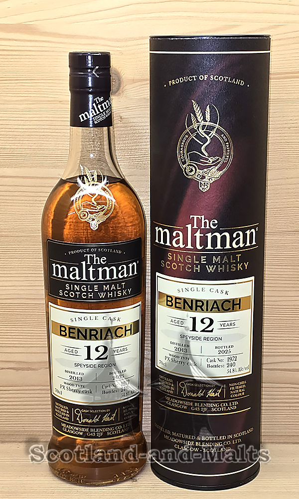 Benriach 2013 - 12 Jahre PX Sherry Cask No. 1972 mit 54,8% von The Maltman - single Malt scotch Whisky