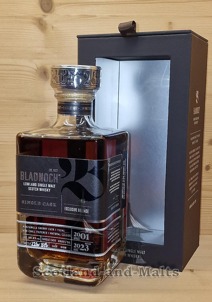 Bladnoch 2001 - 21 Jahre Manzanilla Sherry Cask No. 3198 mit 50,4% Lowland single Malt scotch Whisky