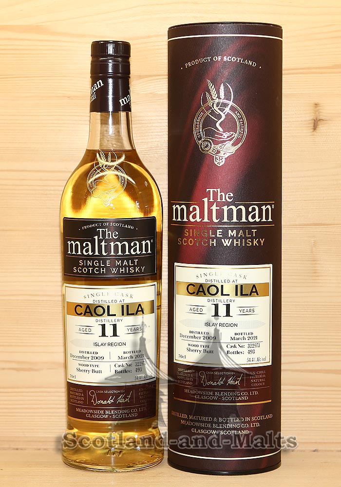 Caol Ila 2009 - 11 Jahre Sherry Butt No. 322973 mit 54,4% von The Maltman - single Malt scotch Whisky