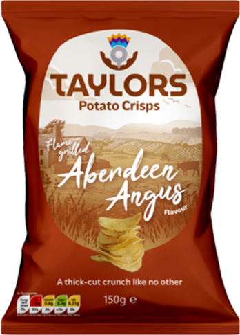 Flame Grilled Aberdeen Angus Potato Crisps 150g Tüte - Kartoffelchips mit Flammengegrillten Aberdeen-Angus-Geschmack aus Schottland von Taylors Snacks