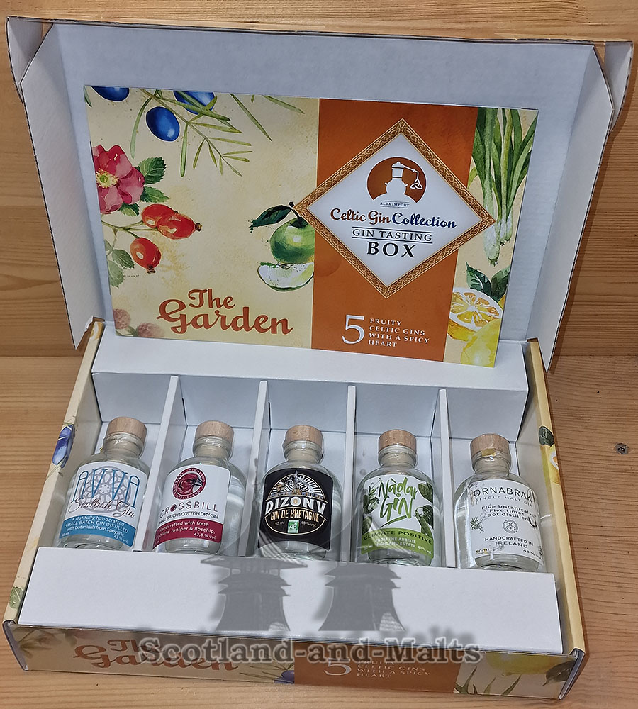 Gin Tasting Box „The Garden“ 5 Fruity Celtic Gins with a Spicy Heart - 5x 40ml AVVA, Crossbill, Dizonv, Nádar und Ornabrak