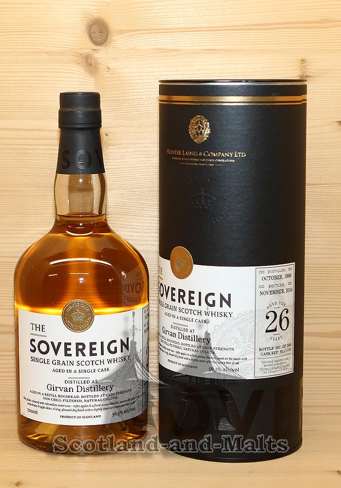 Girvan 1988 - 26 Jahre Refill Hogshead No. HL11119 mit 56,3% - single Grain scotch Whisky - Sovereign von Hunter Laing