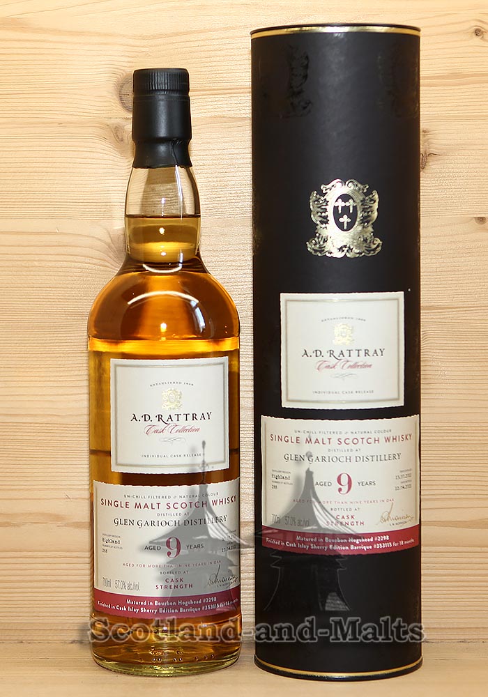 Glen Garioch 2011 - 9 Jahre Bourbon Hogshead No. 2298 + Cask Islay Sherry Cask Finish No. 353115 mit 57,0% single Malt scotch Whisky von A.D.Rattray