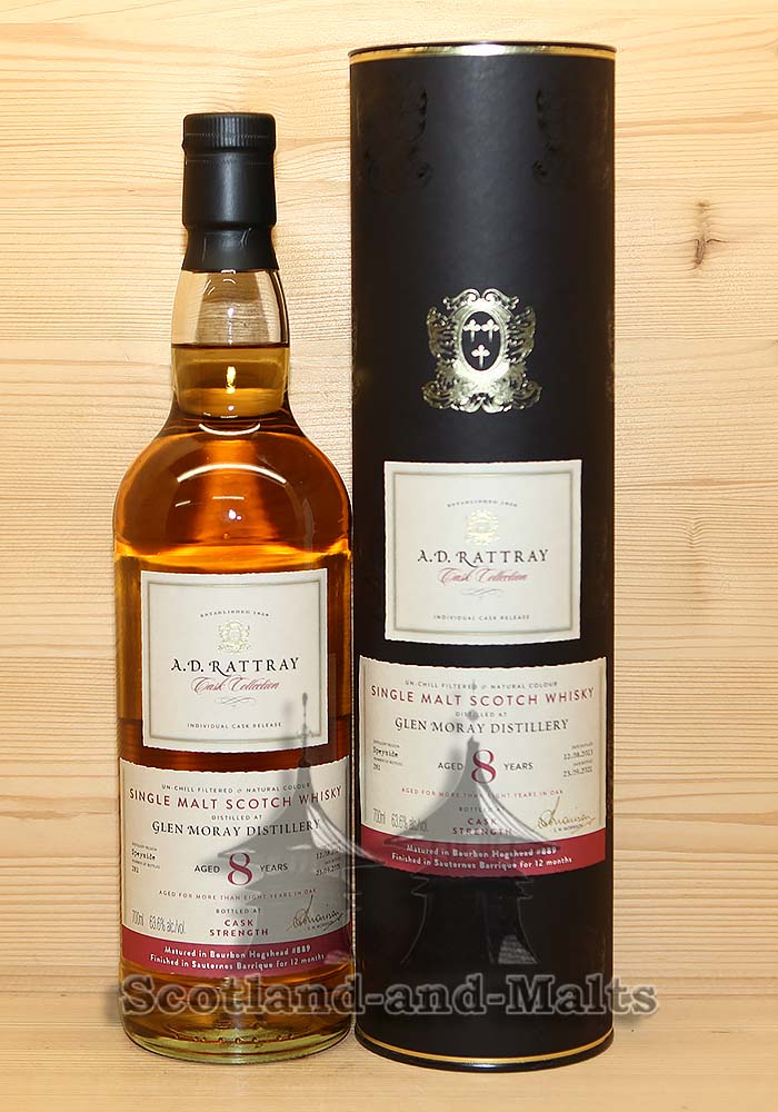 Glen Moray 2013 - 8 Jahre Bourbon Cask + Sauternes Finish No. 889 mit 63,6% single Malt scotch Whisky von A.D.Rattray