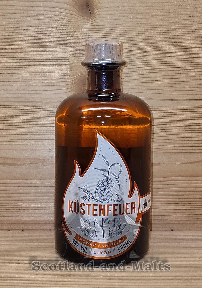 Küstenfeuer Ingwer - Sanddorn Likör mit 56,0% - Kräftiger Likör mit Ingwer und Sanddorn aus Norddeutschland