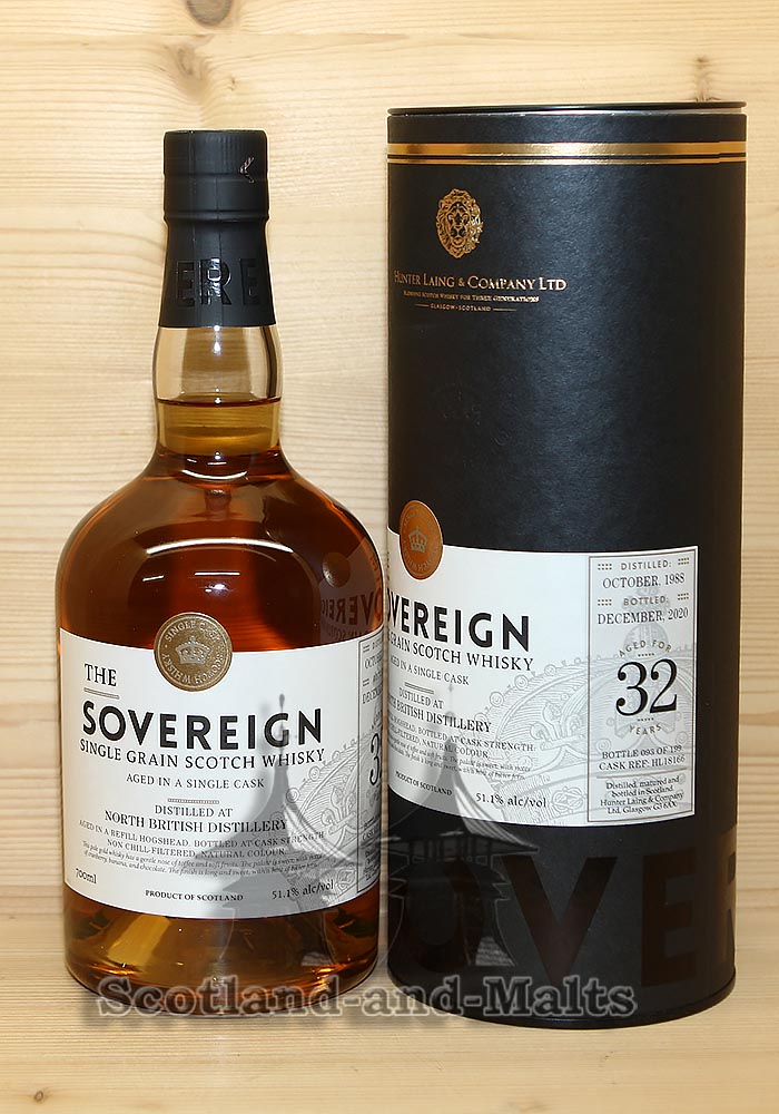 North British 1988 - 32 Jahre Refill Hogshead No. HL18166 mit 51,1% - single Grain scotch Whisky - Sovereign von Hunter Laing