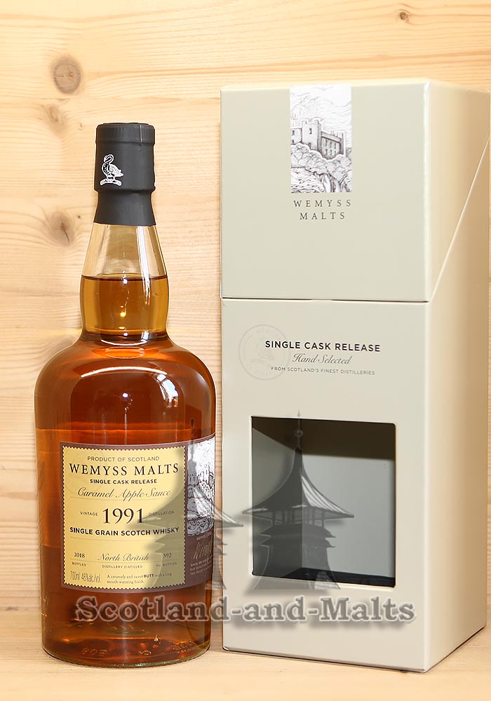 North British 1991 / 2018 - Caramel Apple Sauce - 27 Jahre Sherry Butt mit 46,0% single Grain scotch Whisky von Wemyss Malts