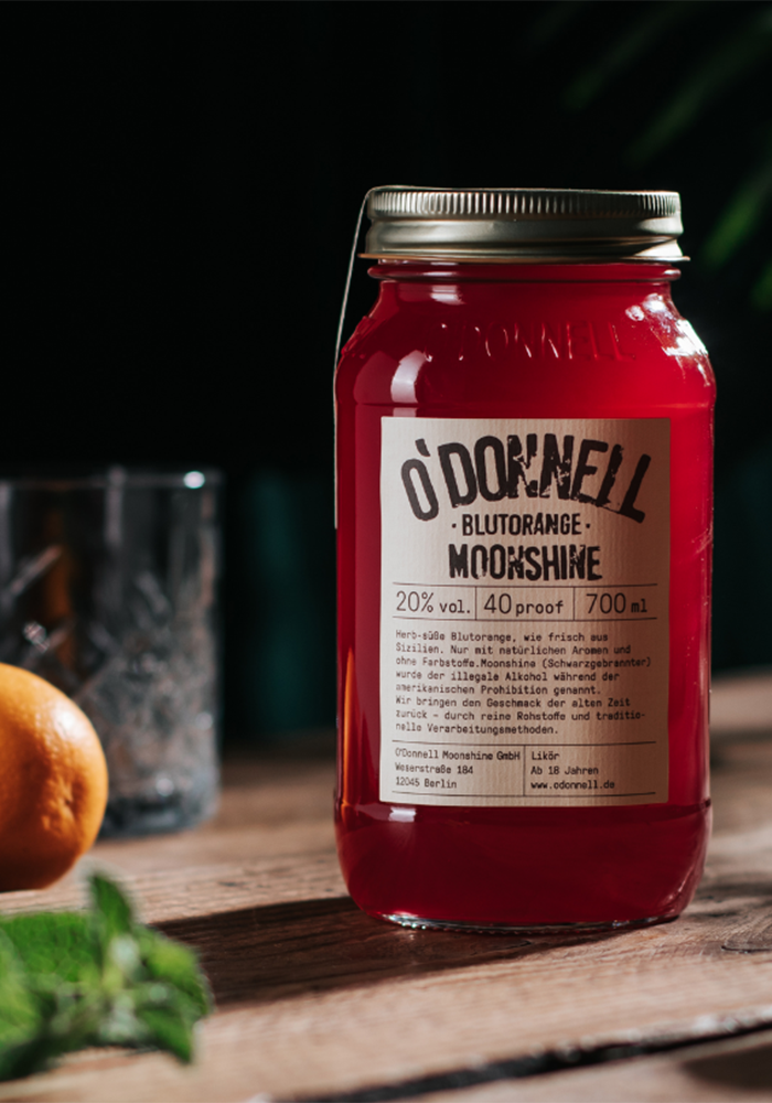 O´Donnell Moonshine Blutorange mit 20,0% - Likör mit herb-süßen Blutorangen im 700 ml Mason Glas - Odonnell Moonshine aus Berlin