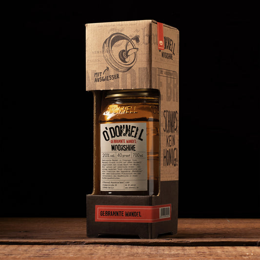 O´Donnell Moonshine Gebrannte Mandel mit 20,0% im Geschenk-Set inkl. Ausgießer - Likör im 700 ml Mason Glas - Odonnell Moonshine aus Berlin