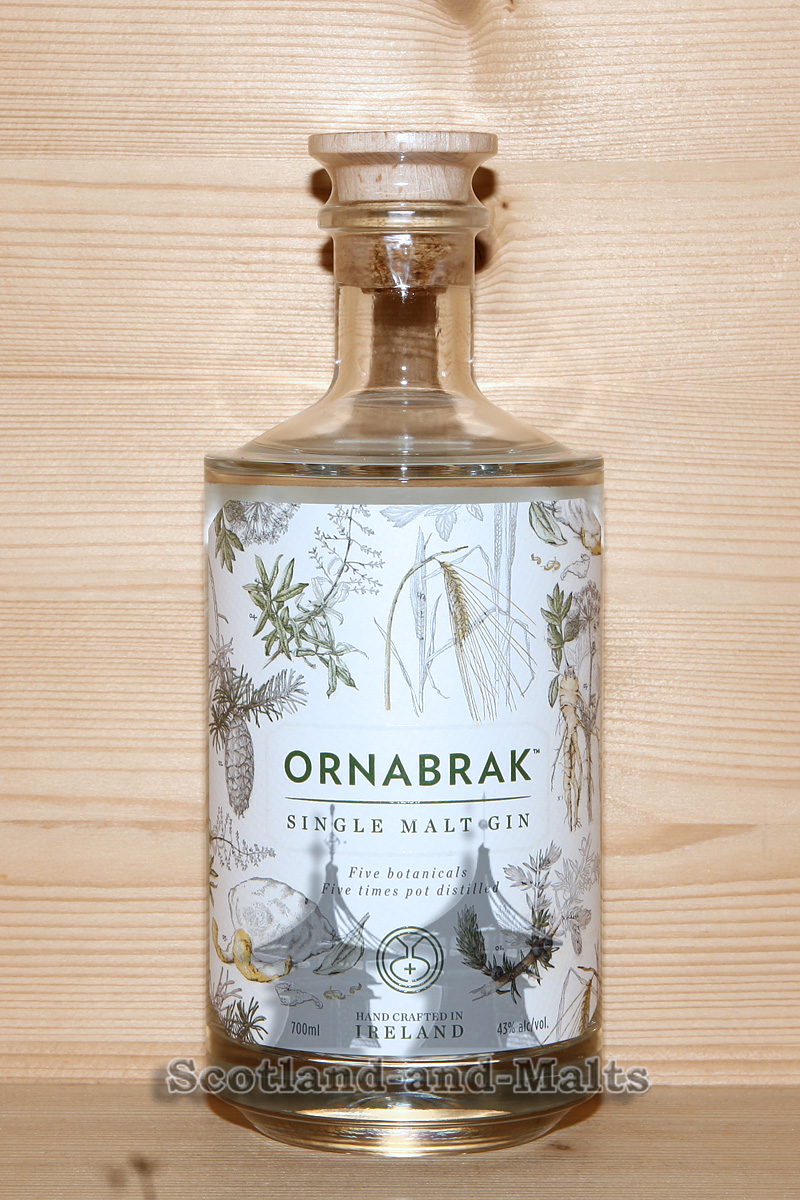 ORNABRAK ist ein unverwechselbarer und außergewöhlicher Single Malt Gin. Handgemacht aus 100% irischer gemälzter Gerste wird ORNABRAK zunächst vierfach in kupfernen Brennblasen destilliert, um dann beim fünften Brenndurchgang gemeinsam mit 5 sorgfältig ausgesuchten Botanicals zu einem komplex-floralen Single Malt Gin zu werden. Der Name ‘Ornabrak’ leitet sich ab vom gälischen Wort für gemälzte Gerste - ‘Eorna Braiche’.