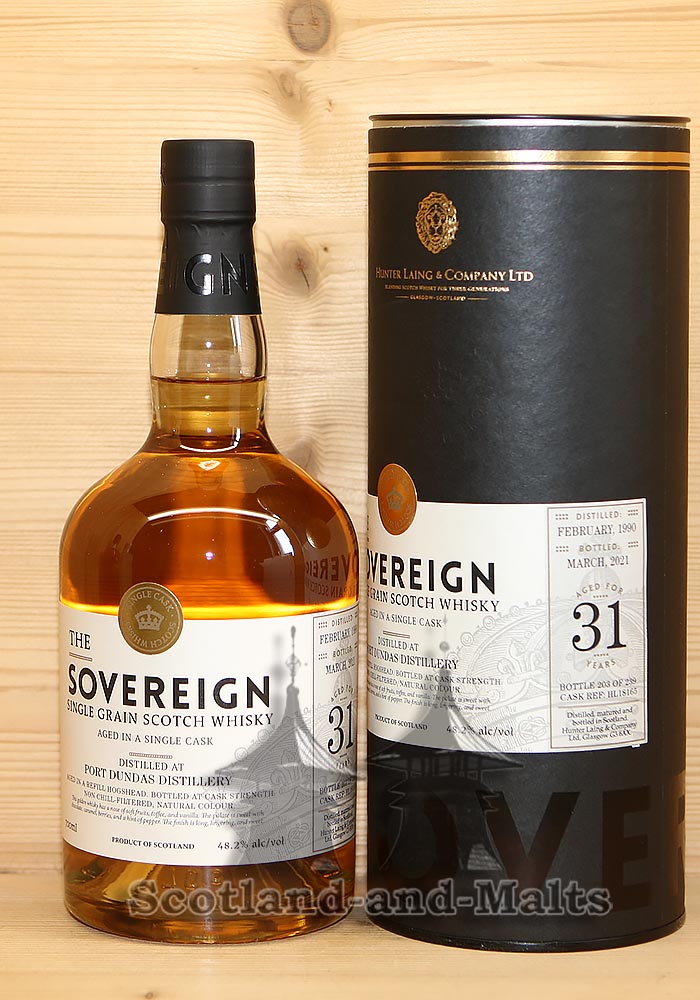 Port Dundas 1990 - 31 Jahre Refill Hogshead No. HL18165 mit 48,2% - single Grain scotch Whisky - Sovereign von Hunter Laing