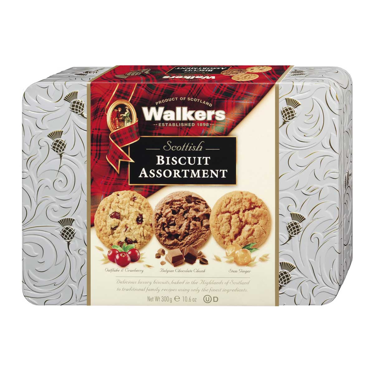 Scottish Biscuit Tin Assortment 300g / Walkers Shortbread Ltd. – Biscuit Mischung in Geschenkdose mit Reliefprägung.