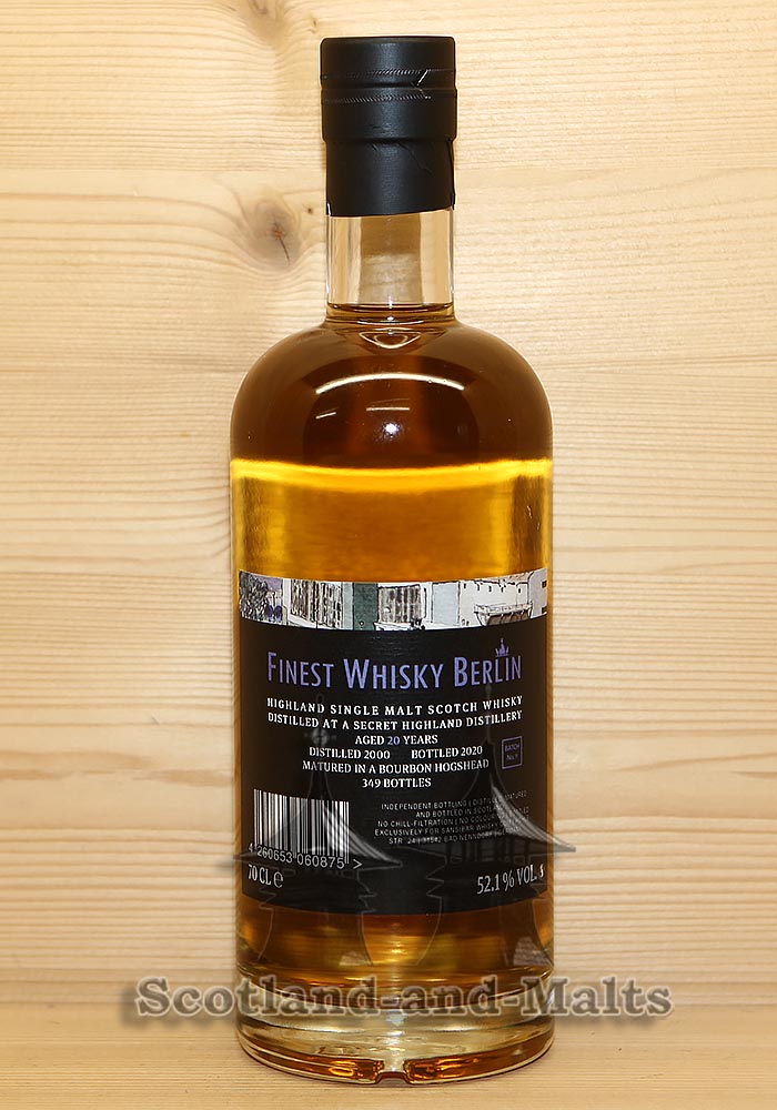 Secret Highland Distillery 2000 - 20 Jahre Bourbon Hogshead mit 52,1% Finest Whisky Berlin Batch 9 - single Malt scotch Whisky