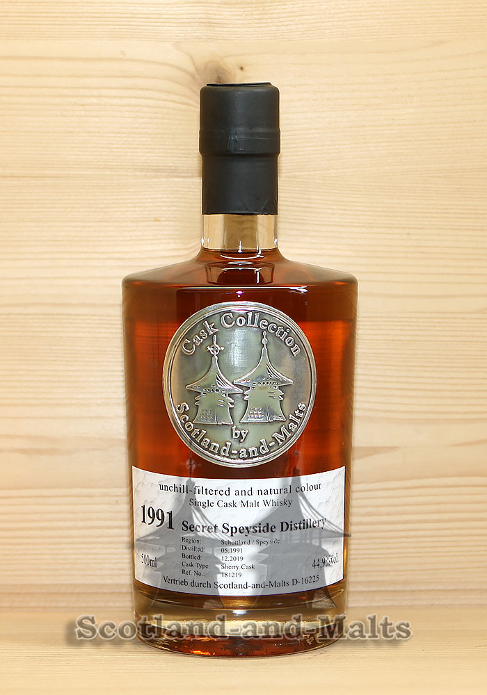 Startseite » ONLINE Whisky-Pub » Schottland » sortiert nach freien Abfüllern » Cask Collection by Scotland-and-Malts » Secret Speyside Distillery 1991 - 28 Jahre Sherry Cask mit 44,9% / Sample ab