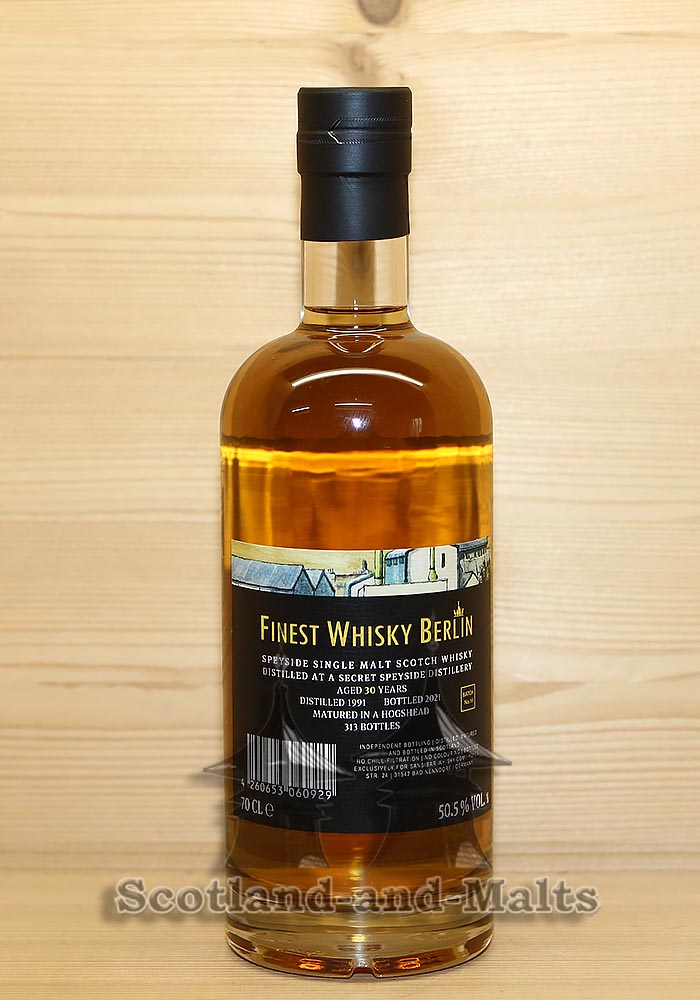 Secret Speyside Distillery 1991 - 30 Jahre Hogshead Cask mit 50,5% single Malt scotch Whisky - Finest Whisky Berlin Batch 10 Sansibar Whisky (Glenlivet)
