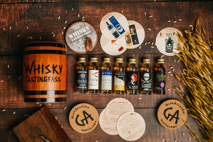 Whisky-Tasting-Fass mit 7 Miniaturen a. 20ml (Sea Shepherd, Amrut, Waterford, Starward, Mars Kasei, GlenAllachie, Stauning)